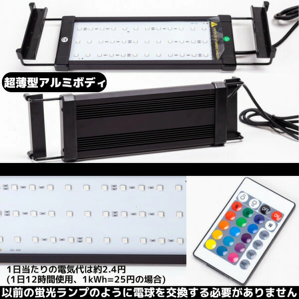 以前の蛍光ランプのように電球を交換必要がありません、8Wの水槽用ライトが非常に明るいです、1日当たりの電気代は約2.4円(1日12時間使用、1kWh=25円の場合)