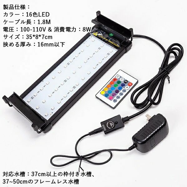対応水槽:37cm以上の枠付き水槽、37~50cmのフレームレス水槽