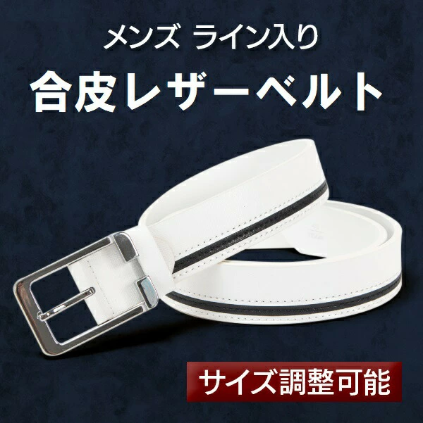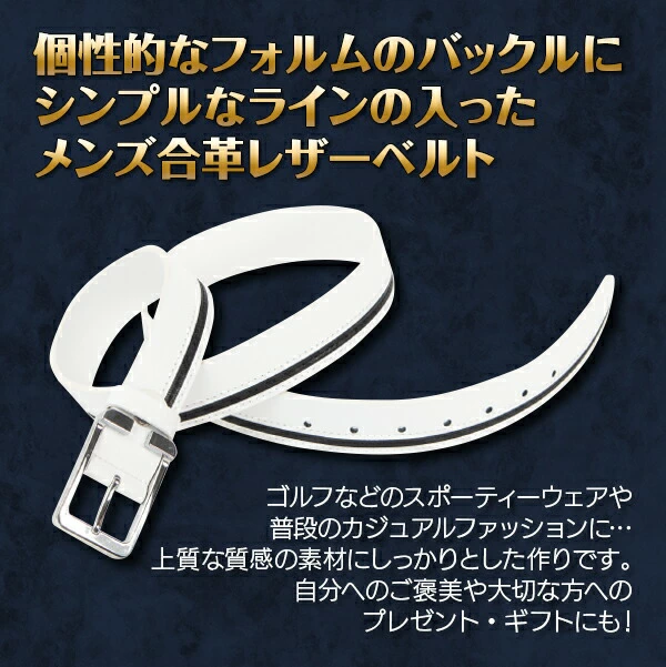個性的なフォルムのバックルに、シンプルなラインの入ったメンズ合革レザーベルトです。