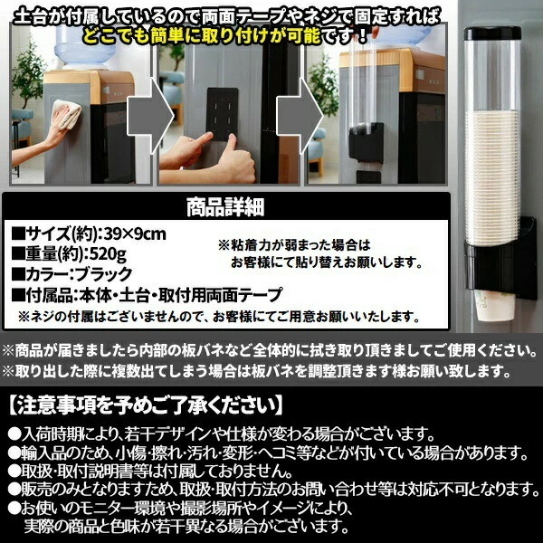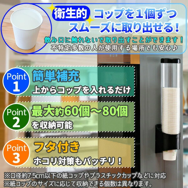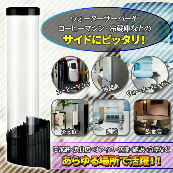カップ ディスペンサー 使い捨て 紙コップ プラスチックコップ ホルダー 7オンス 5オンス 3オンス 大容量 業務用 コップラック カップスタンド 壁付け ウォーターサーバー ブラック